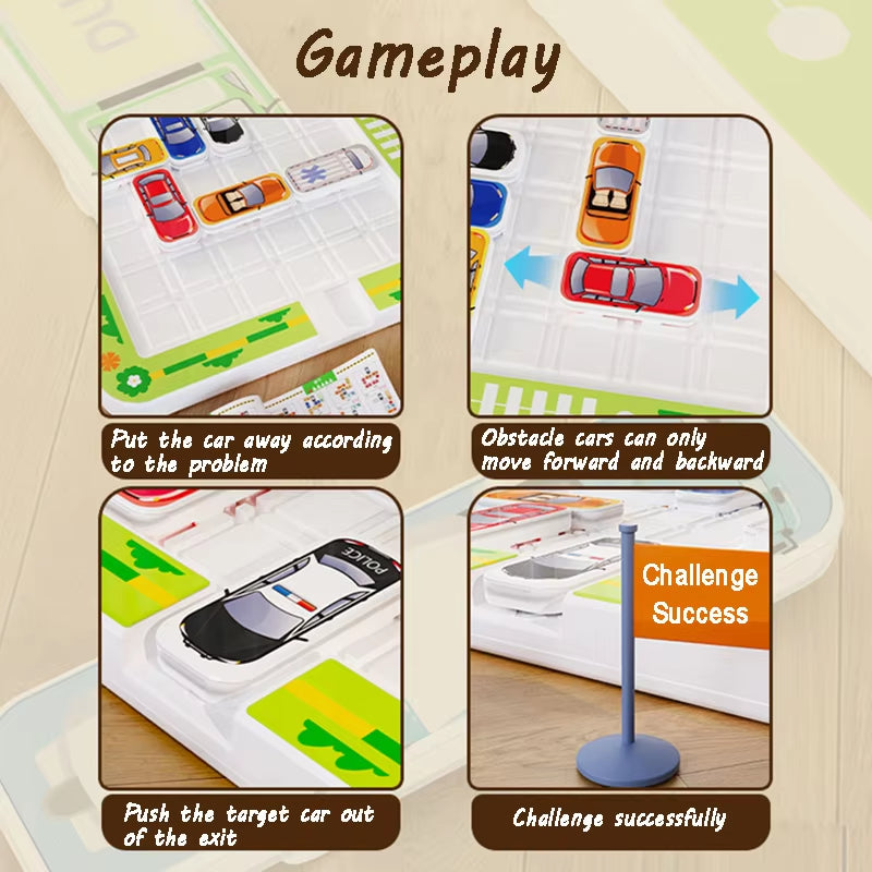 Children's car moving and exiting magnetic parking lot maze game, Montessori logical thinking challenge, intelligence clearance, educational toy